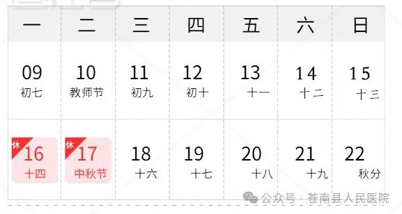 【重要通知】苍南县人民医院2024年中秋节门诊、体检中心工作安排