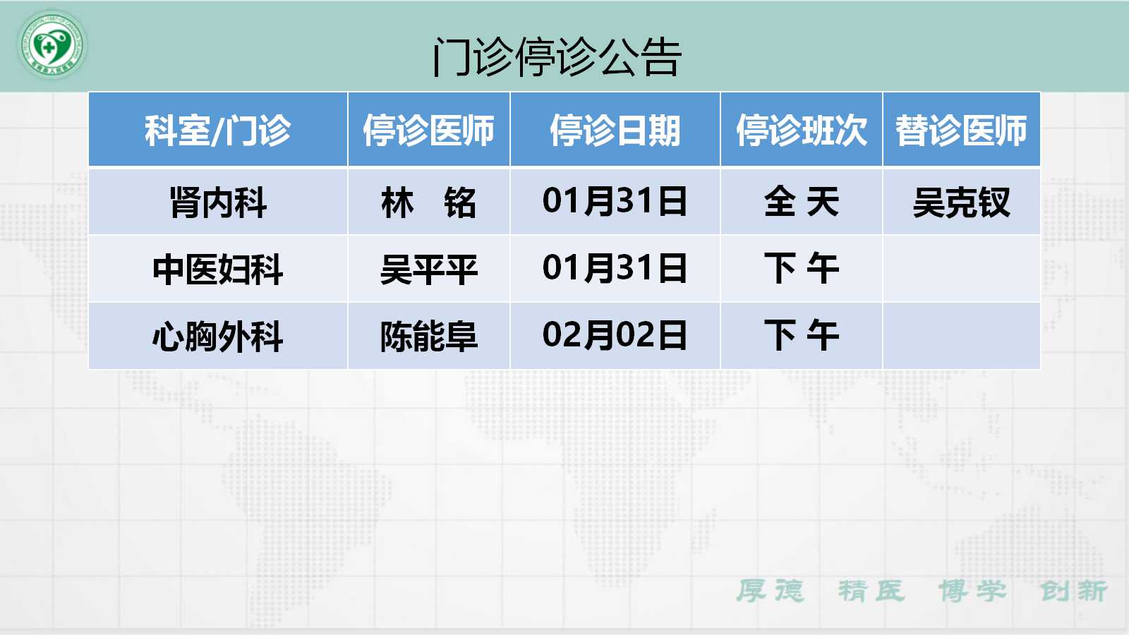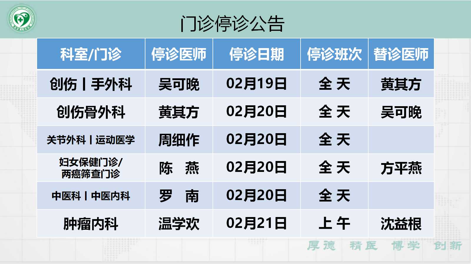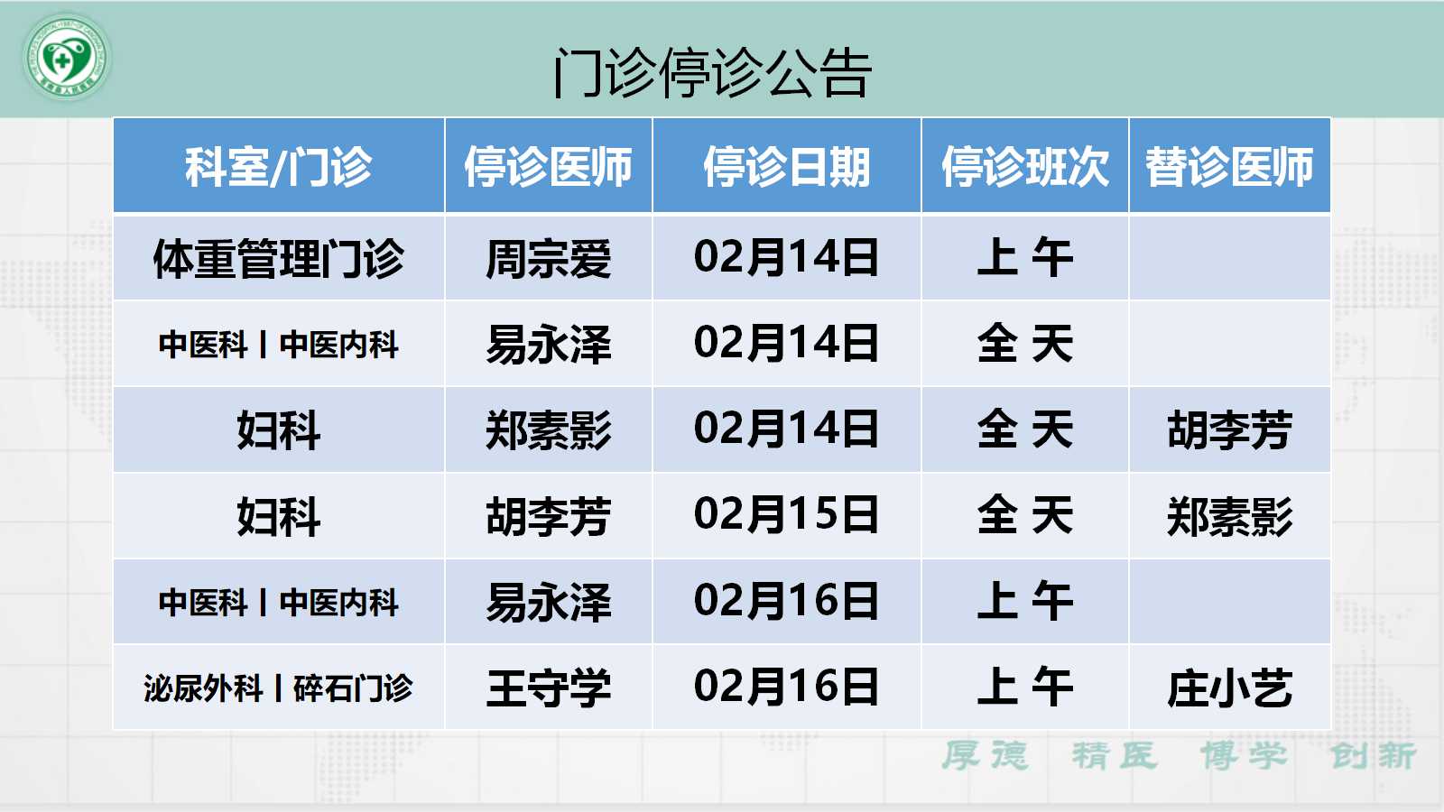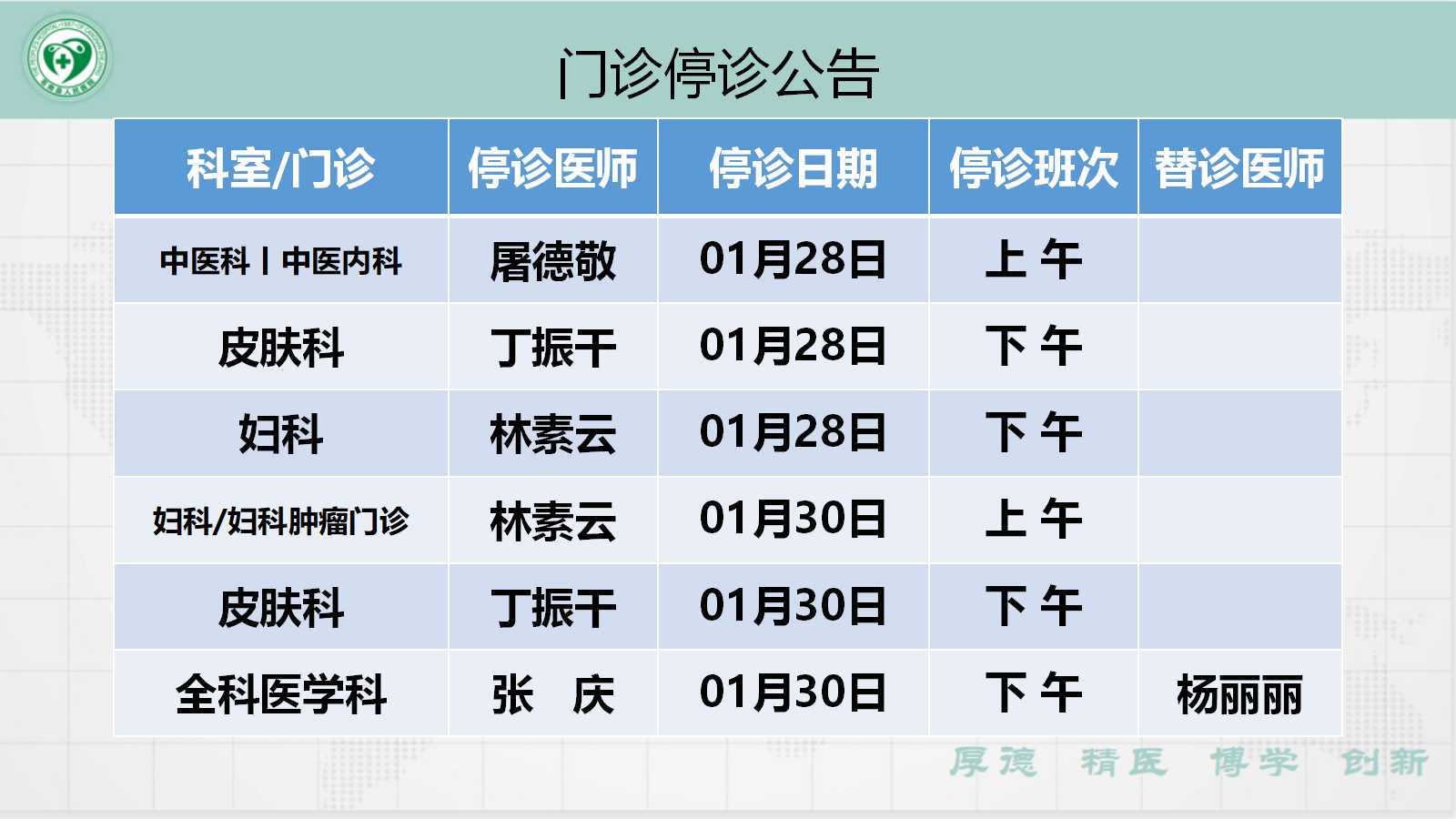 当前位置: 首页 > 医疗服务> 停诊公告