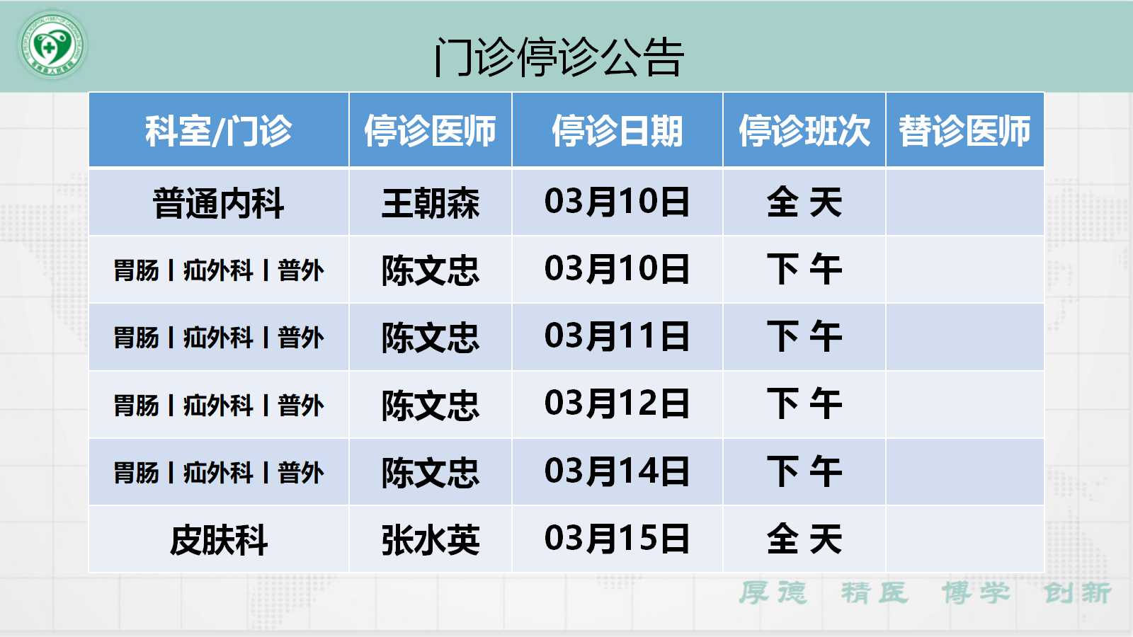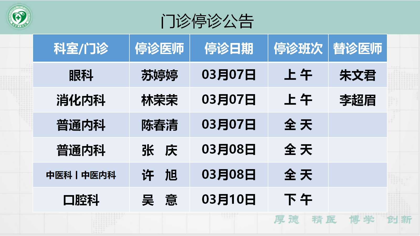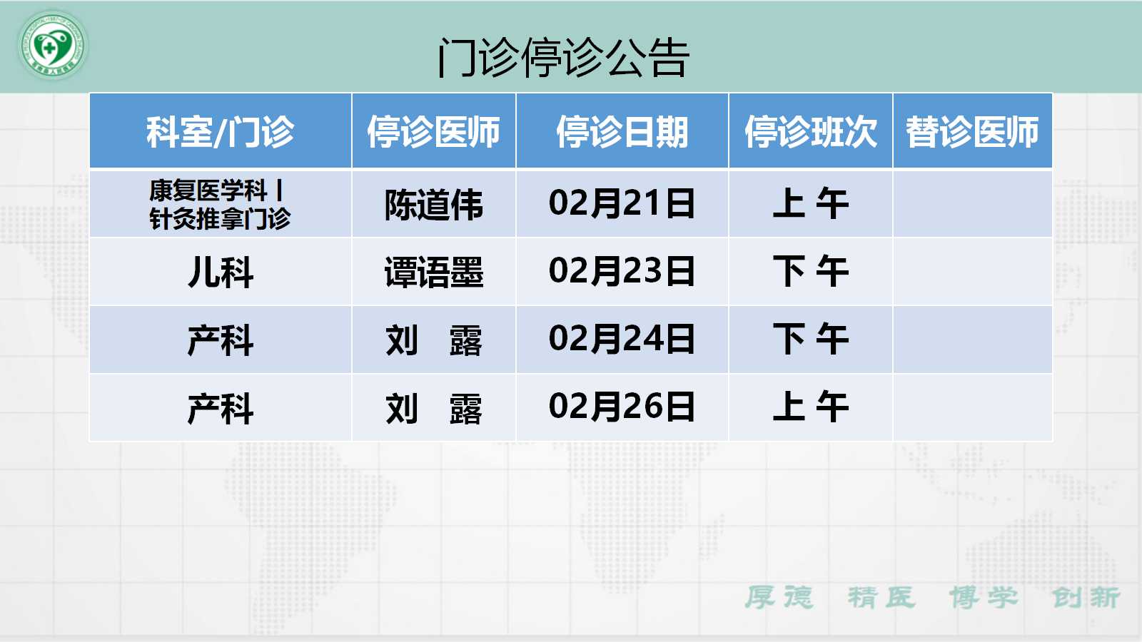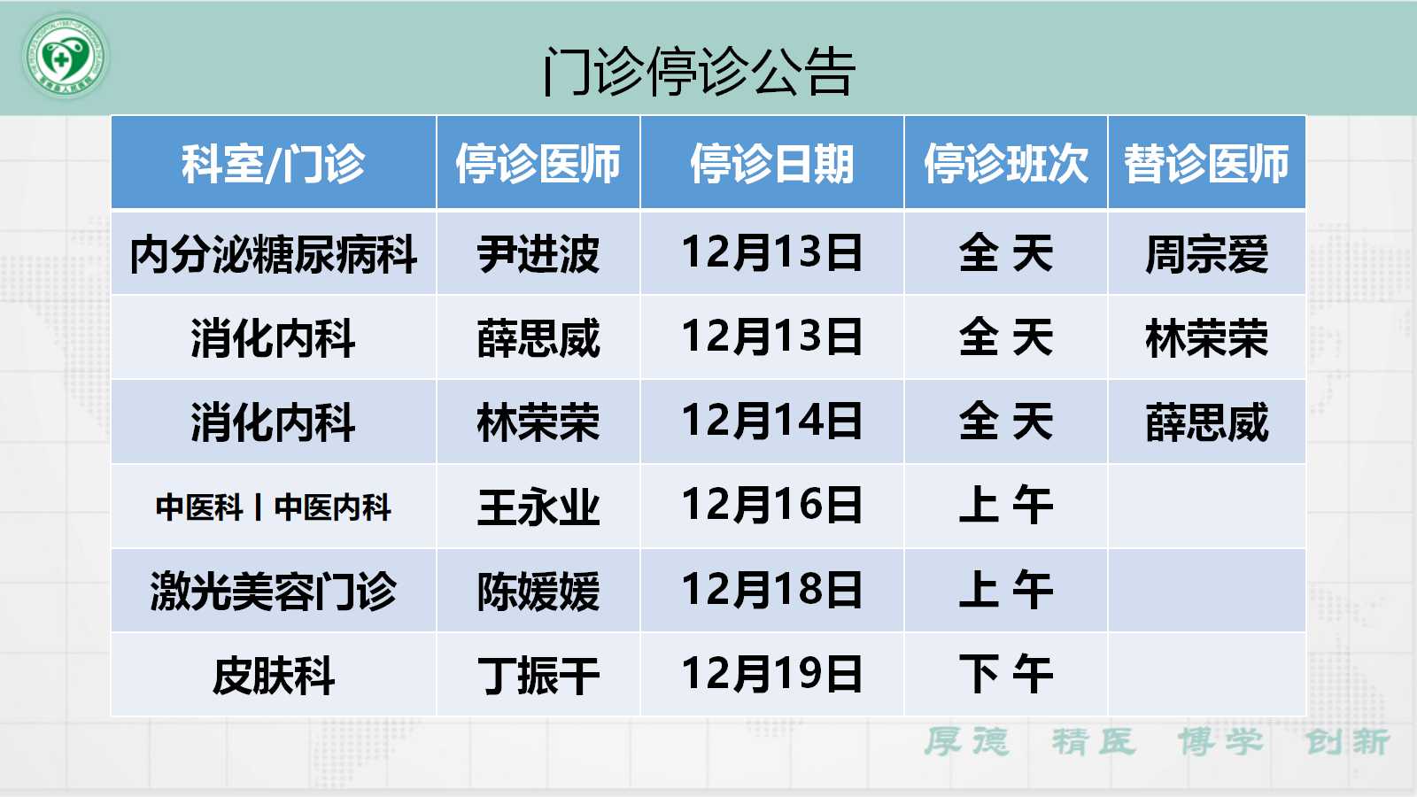 当前位置: 首页 > 医疗服务> 停诊公告